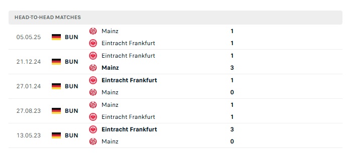 Lịch sử đối đầu Eintracht Frankfurt vs Mainz