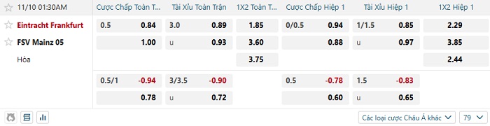 Bảng kèo bóng đá Eintracht Frankfurt vs Mainz