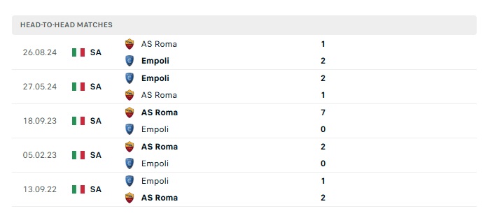 Hiện tại, phong độ thi đấu của Empoli chắc chắn là thua xa so với đối thủ Roma trong thời gian qua. Trong 10 trận đấu gần nhất của Empoli, họ đang chỉ có 1 thắng, 3 hòa và 6 thua trước đối thủ. Trong khi đó thì Roma hiện đang có chuỗi 6 trận liên tiếp bất bại cùng 5 chiến thắng và chỉ hòa 1. Do đó, đội khách chắc chắn sẽ dễ dàng đánh bại đối thủ trong ngày thi đấu hôm nay.