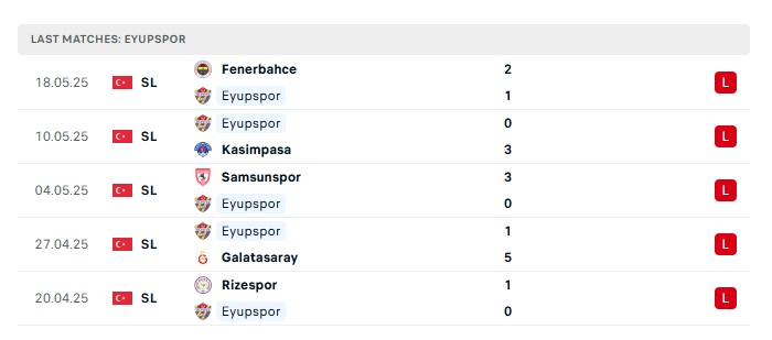 - Phong độ gần đây Eyupspor