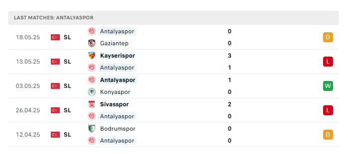 - Phong độ gần đây Antalyaspor