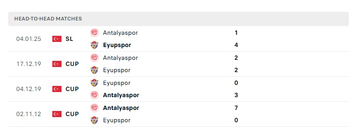 Lịch sử đối đầu Eyupspor vs Antalyaspor
