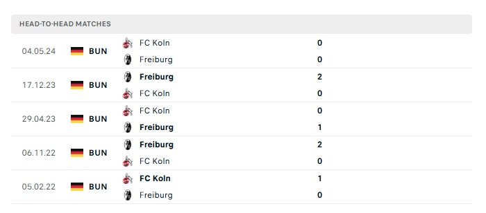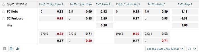 - Kèo tỷ số H2 FC Koln vs Freiburg: 1-0