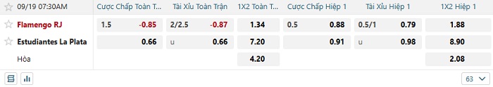 Bảng tỷ lệ kèo bóng đá Flamengo vs Estudiantes