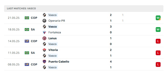 • Phong độ gần đây Vasco da Gama