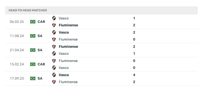 Lịch sử đối đầu Fluminense vs Vasco da Gama