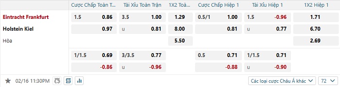 Bảng tỷ lệ kèo bóng đá Frankfurt vs Holstein Kiel
