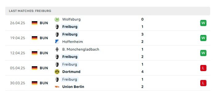 - Phong độ gần đây Freiburg