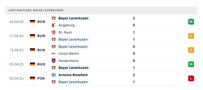- Phong độ gần đây Bayer Leverkusen