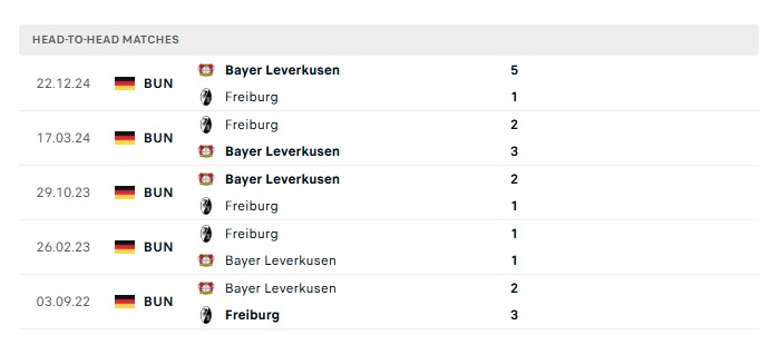 Lịch sử đối đầu Freiburg vs Bayer Leverkusen