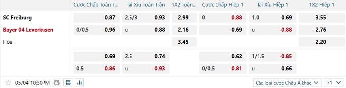 Soi kèo châu Á, kèo Freiburg vs Bayer Leverkusen