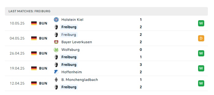 Phong độ gần đây Freiburg vs Ein.Frankfurt