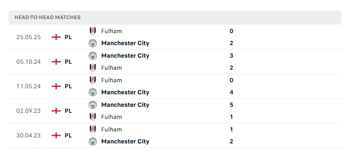 - Kèo tỷ số H2 Fulham vs Man City: 0-2