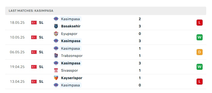 - Phong độ gần đây Kasimpasa