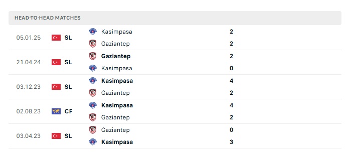 Lịch sử đối đầu Gaziantep vs Kasimpasa