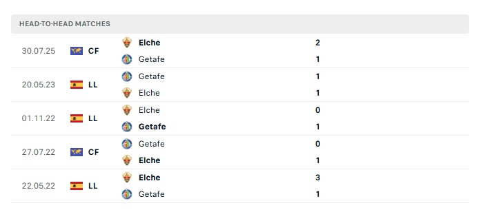 - Kèo tỷ số H2 Getafe vs Elche: 1-0