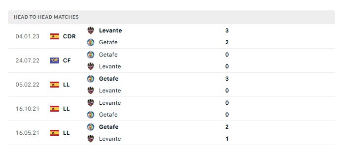 - Kèo tỷ số H2 Getafe vs Levante: 2-1