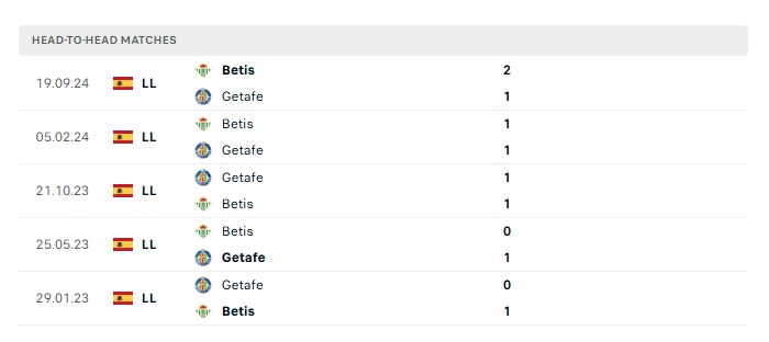 - Kèo tỷ số H2 Getafe vs Real Betis: 0-0