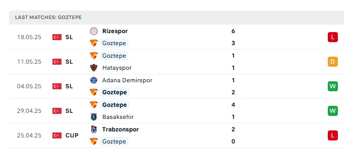 - Phong độ gần đây Goztepe