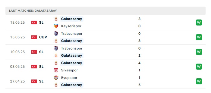 Nên biết rằng, Galatasaray với sức mạnh áp đảo đã duy trì được chuỗi trận toàn thắng rất dài. Tính trong 5 vòng gần nhất, đội bóng này đã toàn thắng cả 5 trận liên tiếp để lên ngôi vương. Trong khi đó thì Goztepe trong 5 vòng đã qua, họ chỉ thắng 2, hòa 2 và thua 1. Dù vậy thì khoảng cách này cũng không còn mang nhiều ý nghĩa khi mà đội khách đã đăng quang mùa giải năm nay.