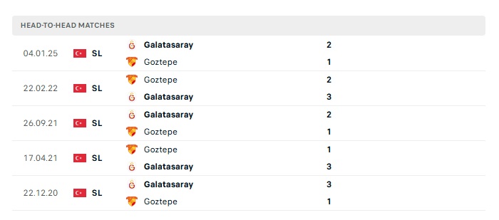 Lịch sử đối đầu Goztepe vs Galatasaray