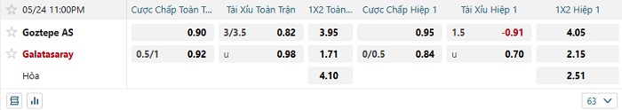 Bảng tỷ lệ kèo bóng đá hôm nay Goztepe vs Galatasaray