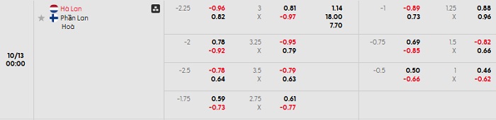 Soi kèo châu Á, kèo Hà Lan vs Phần Lan