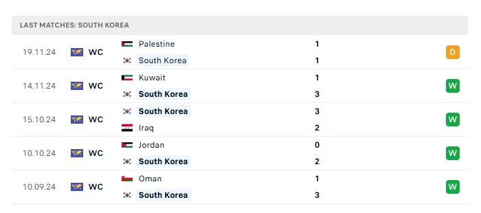 - Phong độ gần đây Hàn Quốc