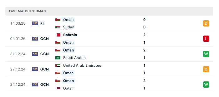 - Phong độ gần đây Oman