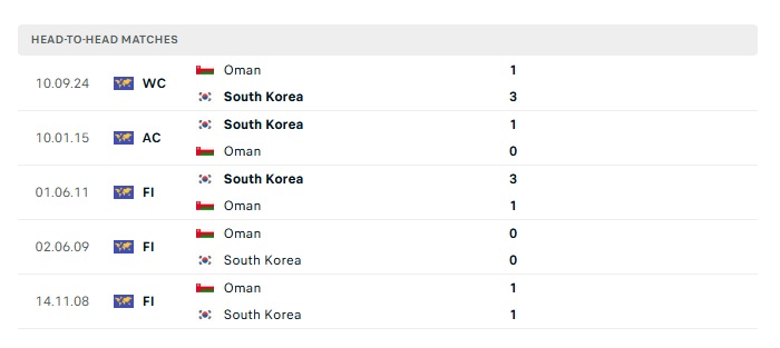 Phong độ gần đây Hàn Quốc vs Oman