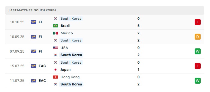 - Phong độ gần đây Hàn Quốc
