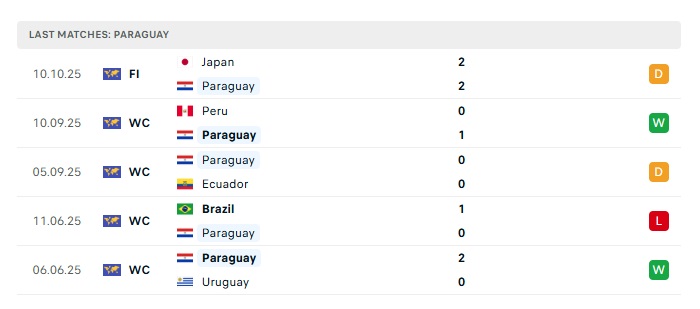 - Phong độ gần đây Paraguay