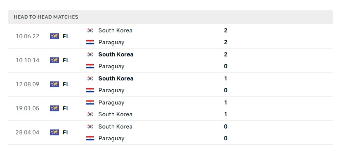 Phong độ gần đây Hàn Quốc vs Paraguay