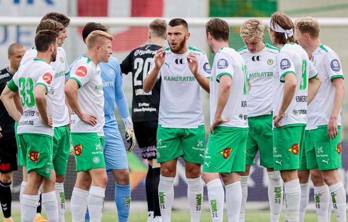 HamKam: Marcus Sandberg; Luc Mares, Fredrik Sjolstad, Norheim; Vidar Ari Jonsson, Simenstad, Kurtovic, Onsrud, Kongsro; Niklas Odegard, Henrik Udahl.