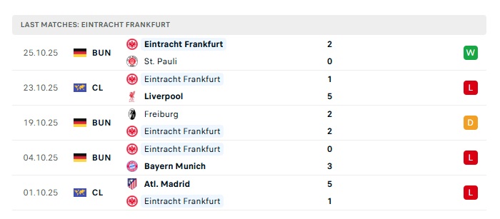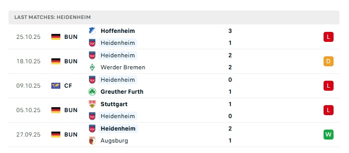 Phong độ gần đây Heidenheim vs Eintracht Frankfurt