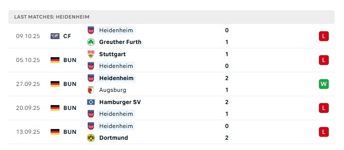 - Phong độ gần đây Heidenheim
