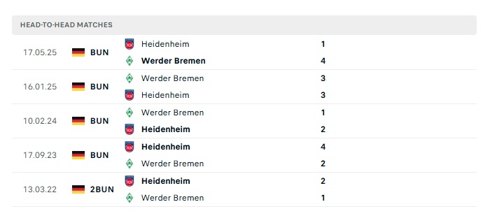 Lịch sử đối đầu Heidenheim vs Werder Bremen