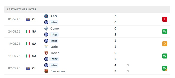 Phong độ gần đây Inter Milan  vs Urawa Red