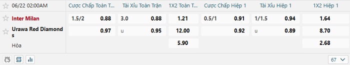 • Kèo tỷ số H1 Inter Milan vs Urawa Red: 0-2