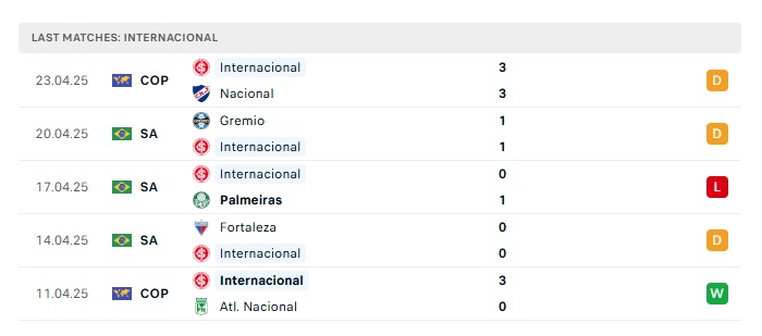 - Phong độ gần đây Internacional