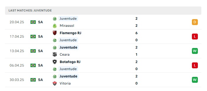 - Phong độ gần đây Juventude