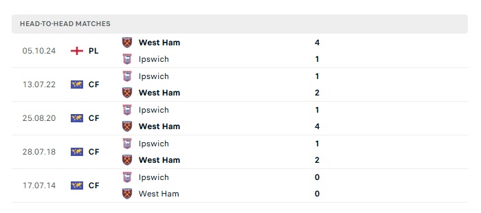Theo đánh giá từ các chuyên gia, khả năng để West Ham có 3 điểm trong ngày thi đấu hôm nay đang là cực cao. Bởi trong 4 lần liên tiếp hai đội đụng độ, West Ham được ghi nhận đã toàn thắng cả 4. Ngoài ra thì Ipswich cũng đang có 8 trận đấu sân nhà liên tiếp toàn thua. Vậy nên kèo châu Âu trận đấu hôm nay sẽ có đội khách là lựa chọn tốt nhất dành cho người hâm mộ.
