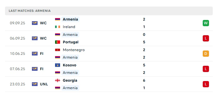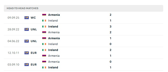 Theo thống kê từ các chuyên gia thì phong độ thi đấu trong thời gian gần đây của hai đội đều đang không tốt. Với Armenia, họ đang chỉ thắng 1, hòa 1 và thua 1 trong 3 trận đấu gần nhất. Trong khi đó thì Ireland đang có 3 hòa và 1 thua trong 4 trận đấu gần nhất của mình. Do đó, các chuyên gia đều tin rằng trận đấu hôm nay sẽ khép lại với Armenia đủ sức giành có được 1 điểm trước đối thủ.