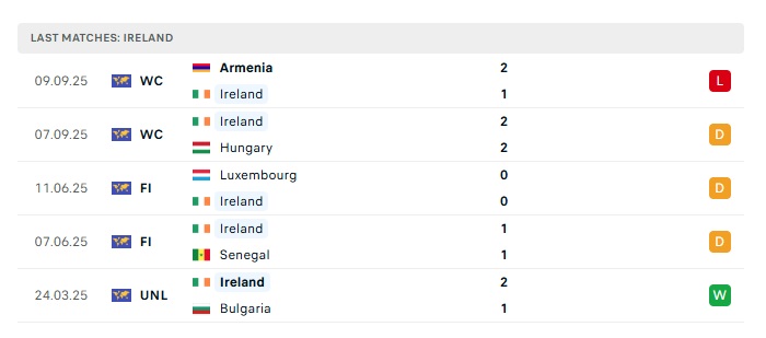 Đang có kết quả thi đấu không hề tốt, Ireland hôm nay sẽ phải chịu 1 áp lực rất lớn trước Armenia. Nên biết rằng tại bảng F lúc này, Armenia đang có 3 điểm sau 2 vòng và đứng top 2. Trong khi đó thì Ireland đang chỉ có được đúng 1 điểm sau 2 vòng và đứng chót bảng. Như vậy, đội chủ nhà sẽ chỉ có thể đặt hy vọng vào lợi thế sân bãi mà họ đang có để đặt mục tiêu có điểm.