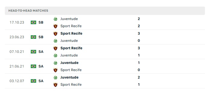 • Kèo tỷ số H2 Juventude vs SC Recife: 1-0