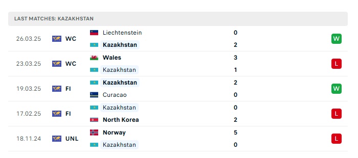 Phong độ gần đây Kazakhstan vs North Macedonia