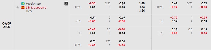 Soi kèo châu Á, kèo Kazakhstan vs North Macedonia