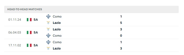 - Kèo tỷ số H2 Lazio vs Como: 3-0