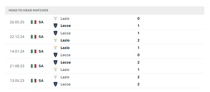 • Kèo tỷ số H2 Lazio vs Lecce: 2-0