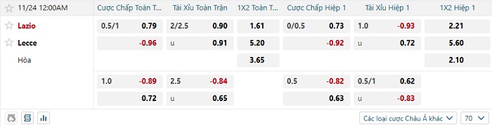 Soi kèo châu Á, kèo Lazio vs Lecce